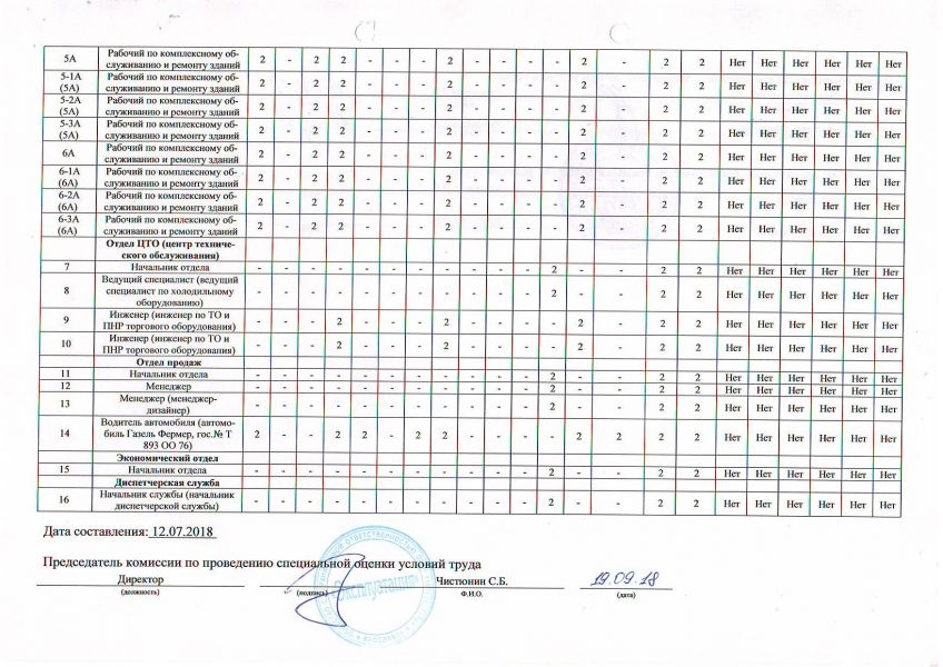 ООО "Эксплуатация" Сводная ведомость результатов проведения СОУТ - Отчет от 19.09.2018г.